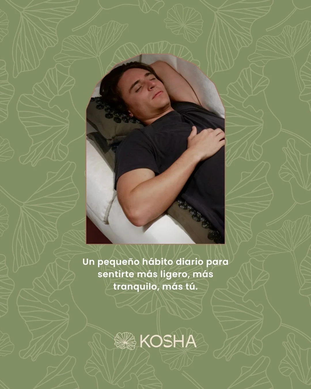 Solo necesitas de 10 a 20 minutos de Kosha Mat al día para sentir una sensación de alivio inmediato. Puedes usarlo por la mañana para activar tu cuerpo, o por la noche para relajarte antes de dormir.