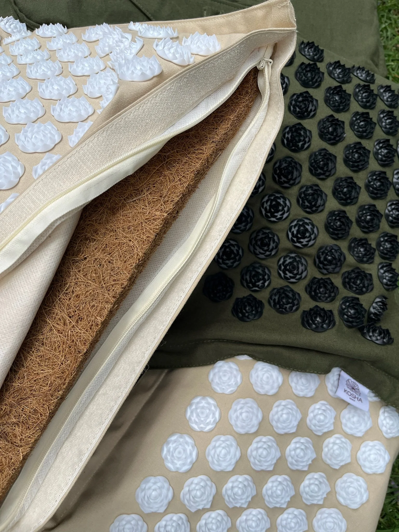 El mat de acupresión es una herramienta de bienestar inspirada en la medicina tradicional china. Cuenta con cientos de micropuntas que, al entrar en contacto con la piel, estimulan puntos clave del cuerpo para liberar tensión y activar procesos naturales de sanación.