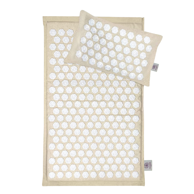 Añade la almohada de acupresión para cuello o pies. Combina con música relajante o una meditación guiada.